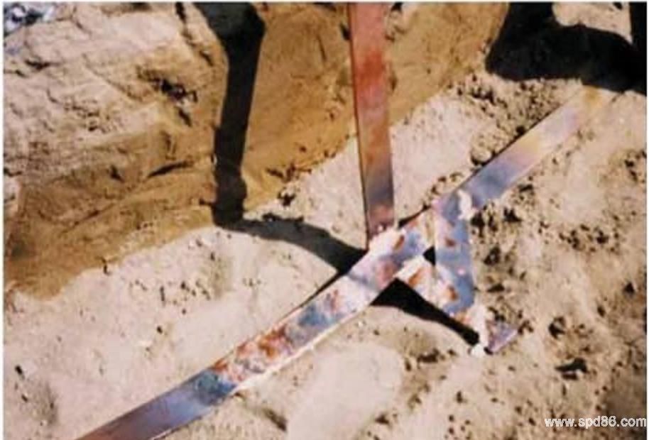 当今接地系统接地体连接方式有压力焊、钎接、放热焊接等.要保证接地系统的可靠性。接地系统的连接点的寿命必须大于或等于接地导体的寿命.连接点必须能承受多次故障电流在防腐蚀的情况下能保持低电阻.而放热焊接焊接的连接点是符合以上条件的,而且还节省接地材料。
